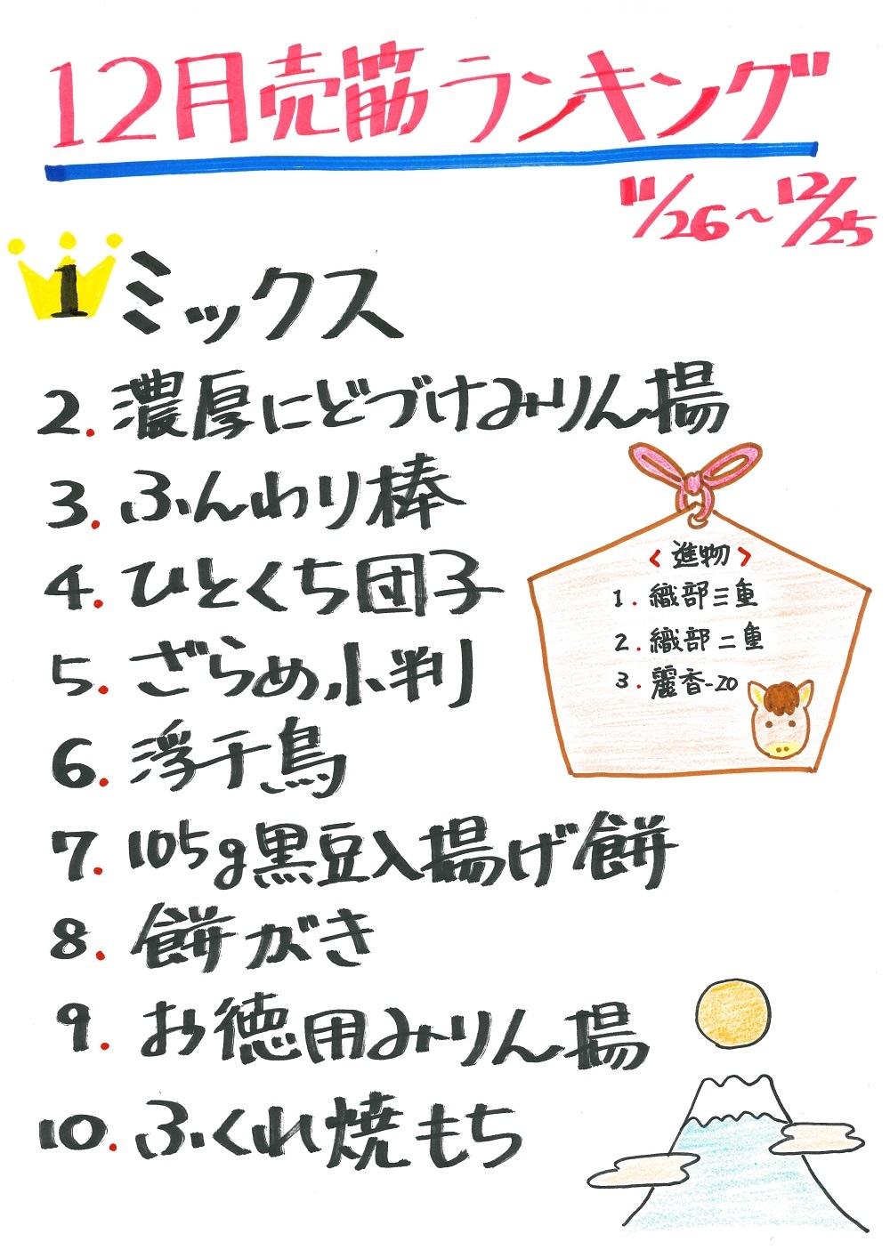 12月おかき屋本店売れ筋ランキング!